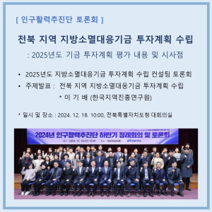 전북 지역 지방소멸대응기금 투자계획 수립: 2025년도 기금 투자계획 평가 내용 및 시사점(전북특별자치도 인…